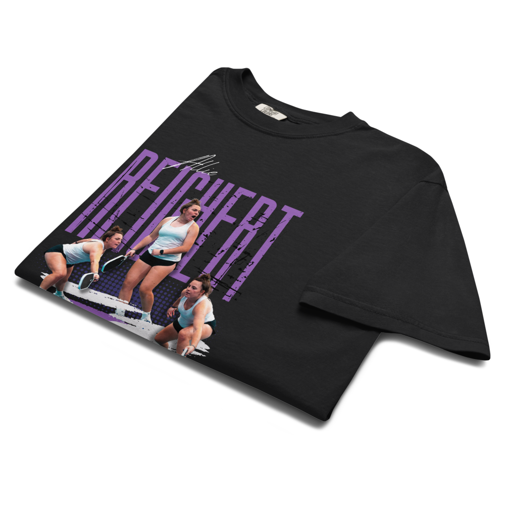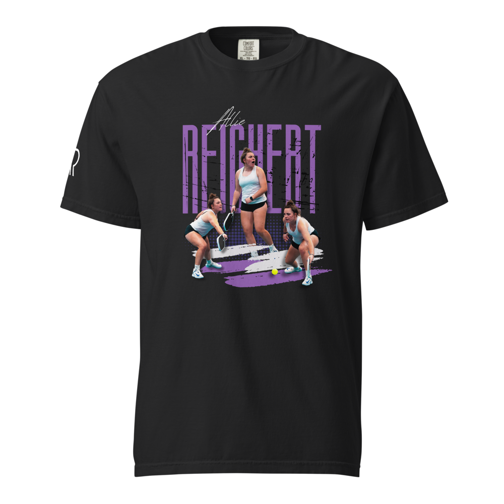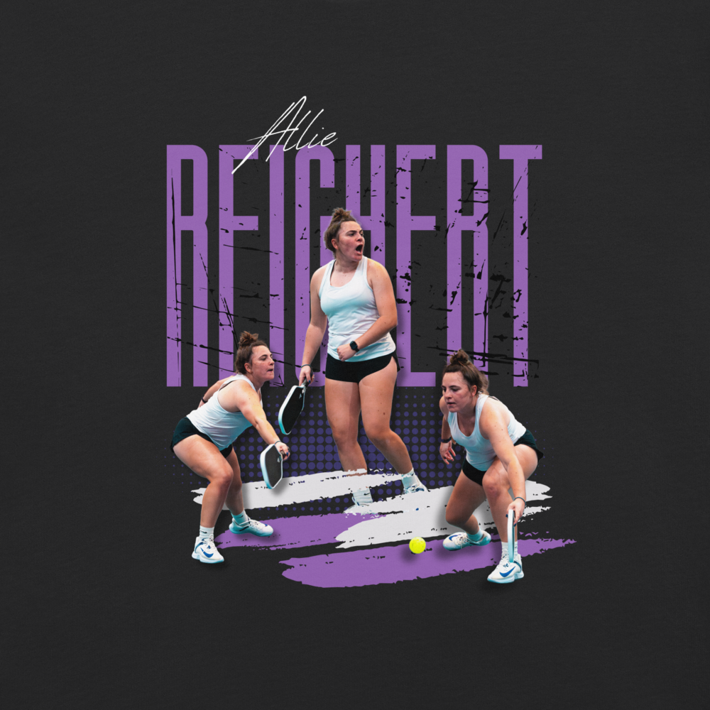What’s better than one Allie Reichert tearing up the courts? Three. That’s right—this tee delivers a triple dose of attitude, featuring three action shots of Allie doing what she does best (besides overdosing on Sour Patch Kids and waiting for Joe Burrow’s call).